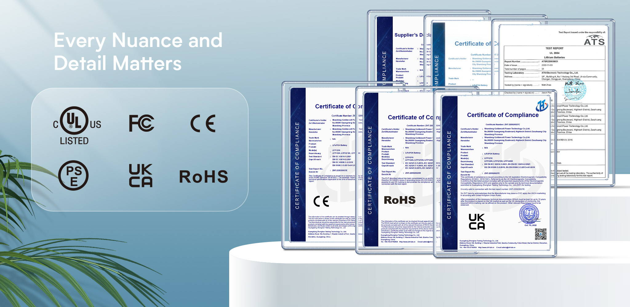Aolithium batteries are certified with UL/CE/UKCA/UN38.3/FCC ID/CE RED. Meets all US & International regulations for air, ground, and train transport.